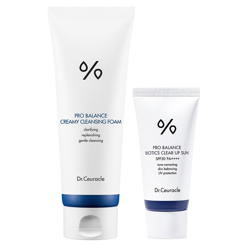 Pro Balance Biotics Clear Up Sun SPF50 Fizyczno-chemiczny filtr przeciwsłonecznyKosmetyk dedykowany dla każdego typu cery, również delikatnej i wrażliwej. Swoje działanie opiera na mieszance filtrów fizycznych i chemicznych pozwalających na ochronę skóry przed niekorzystnym wpływem promieniowania słonecznego. W skład produktu wchodzi kompleks pięciu probiotyków wzmacnia naturalną barierę ochronną. Dodatek niacynamidu pozwala łagodzić podrażnienia, niwelować przebarwienia i redukować stany zapalne. Krem pozwala na ochronę skóry przed fotostarzeniem, dzięki czemu zachowuje ona młody wygląd na dłużej. W rezultacie skóra jest nawilżona, subtelnie rozjaśniona i odpowiednio zabezpieczona.