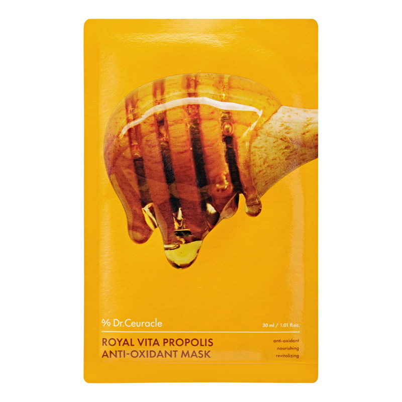 Produkt opiera swoje działanie na ekstraktach z propolisu oraz z mleczka pszczelego, a także na innych składnikach znanych ze swoich funkcji przeciwzapalnych, antyseptycznych oraz łagodzących skórę. Za działanie rozświetlające i wyrównujące koloryt odpowiada witamina C. Specjalna formuła maseczki w płachcie opracowana przez markę Dr Ceuracle gwarantuje odpowiednie odżywienie i nawilżenie cery.