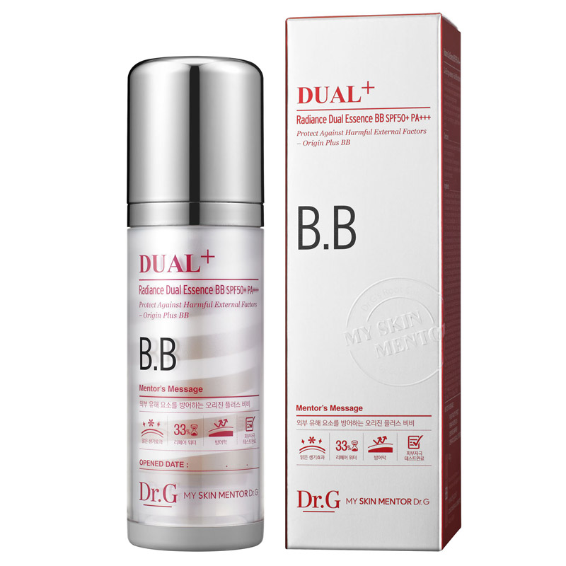 Dual+ Radiance Dual Essence BB SPF 50 - Krem BB z kryształowym pudrem dedykowany dla każdego typu cery, szczególnie poszarzałej potrzebującej poprawy kolorytu. Krem stanowi rewelacyjne połączenie rozświetlającego serum oraz ochrony przeciwsłonecznej. Filtry przeciwsłoneczne UVA i UVB SPF 50 PA++ chronią skórę przed szkodliwym promieniowaniem, tym samym opóźniając proces fotostarzenia. Kryształowy puder nadaje skórze ożywiony, zdrowy koloryt i zapewnia jej odczuwalną świeżość. Wyciąg z kwiatu czerwonej kamelii w połączeniu z innymi opatentowanymi składnikami zapewnia rewelacyjne wygładzenie skóry i nadanie blasku cerze. Dodatkowo krem zapewnia odpowiedni stopień nawilżenia, wspaniale niweluje podrażnienia skóry oraz chroni ją przed ich powstawaniem. Rezultatem stosowanie kremu BB jest wspaniale rozświetlona, pełna blasku cera. W składzie nie ma takich składników jak talk, parabeny, sztuczne barwniki, oleje mineralne i benzofenony.