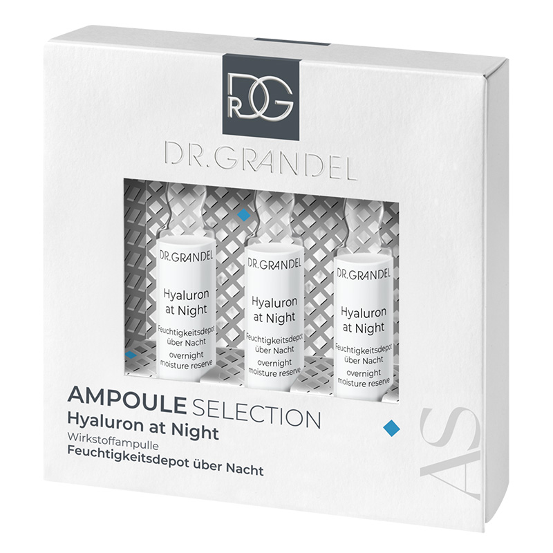 Składowa Dr Grandel Hyaluron Ampułka intensywnie nawilżająca, ujędrniająca i wygładzająca występuje w zestawie Let\'s Sparkle w zmienionej objętości.
