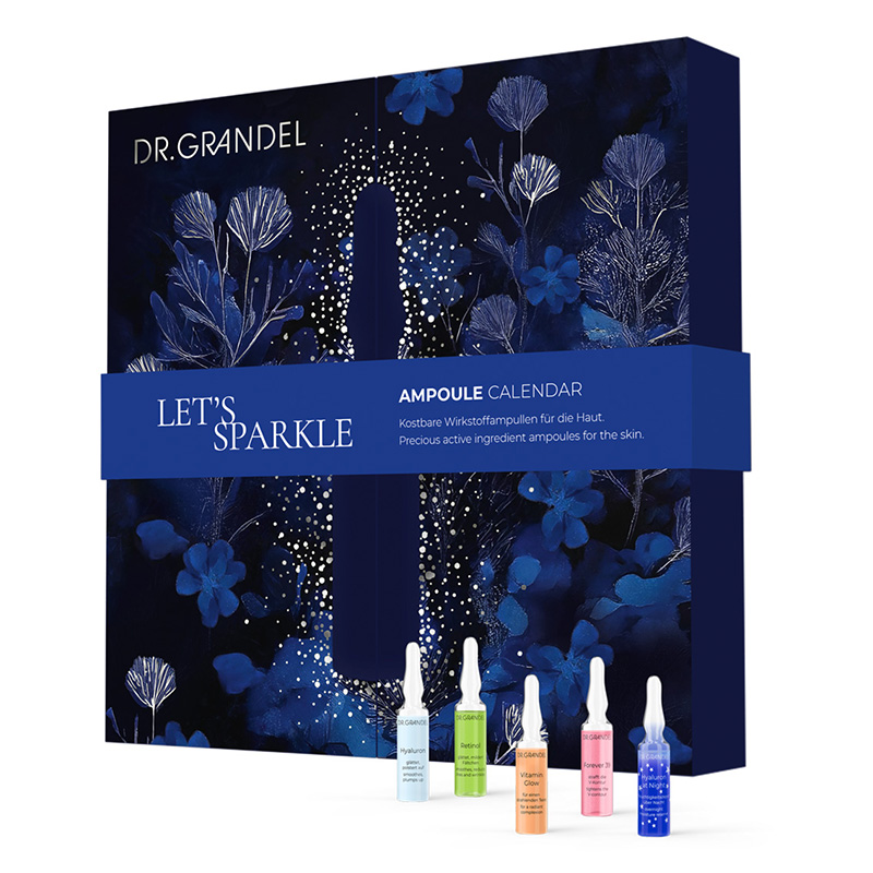 Składowa Dr Grandel Hyaluron Moisture Flash Ampułka z mikro-hialuronem: natychmiastowe, intensywne, głębokie nawilżenie występuje w zestawie Let's Sparkle w zmienionej objętości.