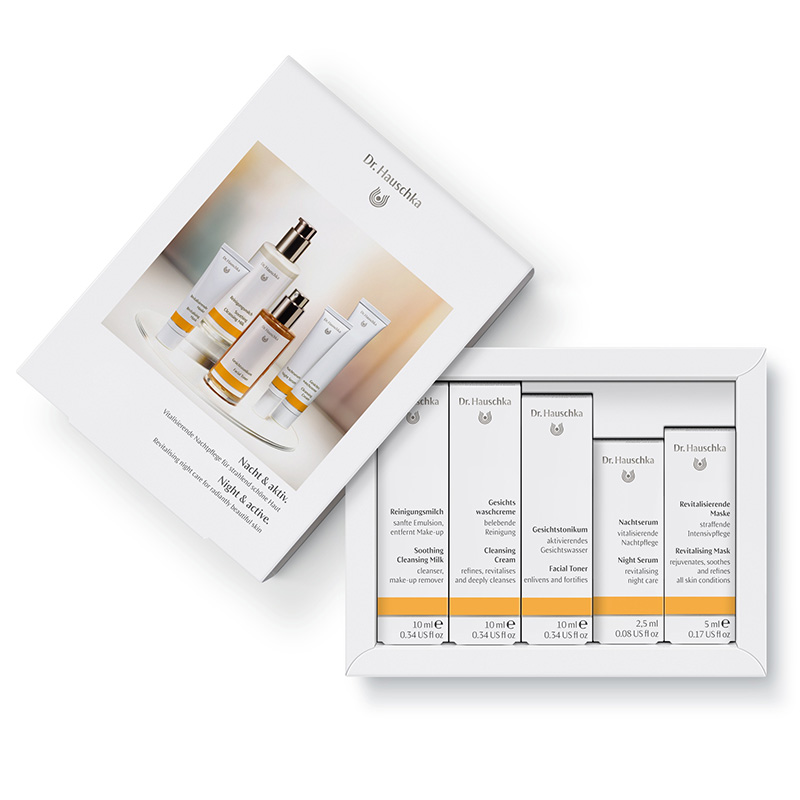 Składowa Dr Hauschka Night Serum Serum na noc występuje w zestawie Zestaw Noc w zmienionej objętości.