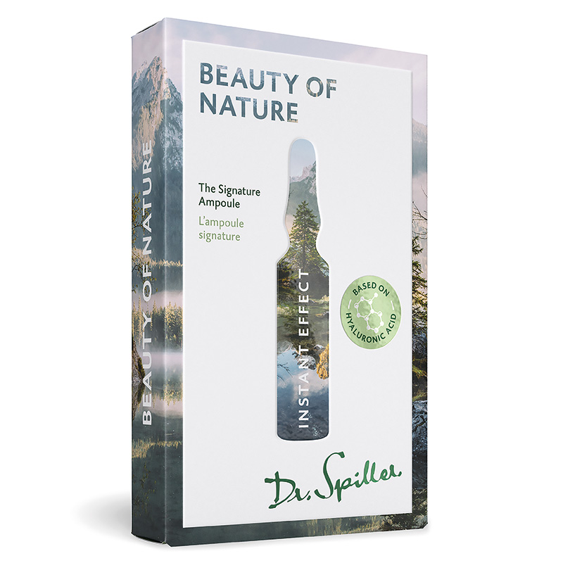 Beauty Of Nature - The Signature Ampoule Ampułki natychmiastowy. Pielęgnacja o podwójnym działaniu. Przede wszystkim zaopatruje skórę w ważne dla niej składniki aktywne opóźniając procesy starzenia. Użycie ampułki przynosi natychmiastowo młodszy wygląd skóry i efekt liftingu. Idealnie sprawdzi się tuż przed wielkim wyjściem. Bardzo szybko odświeży i pobudzi skórę po nieprzespanej nocy. Są to koncentraty do zadań specjalnych, dla skór bardzo wymagających i potrzebujących solidnej dawki energii i młodości już po pierwszym użyciu.