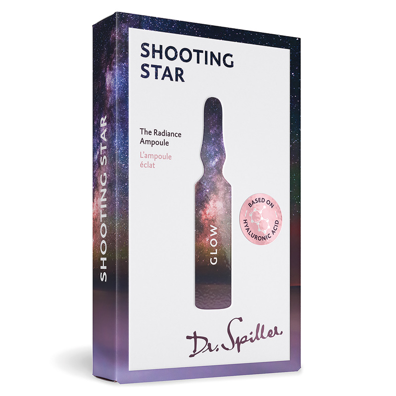 Shootingstar The Radiance - Ampoule Ampułki blasku. Działanie ampułek jest oparte na zapewnieniu zdrowego blasku i naturalnej promienności. To sprawia, że skóra wygląda na zdrową i wypoczętą. Dodaje jej energii, zapewnia optymalne nawilżenie, wygładza drobne linie i zmarszczki oraz przywraca młodzieńczy wygląd. Na taki rezultat ma wpływ mocno skoncentrowana mieszanka składniki aktywnych tj. ekstrakt z białego hibiskusa i z owoców Baobabu wraz z bazą preparatu, którą stanowi nawilżający kwas hialuronowy.