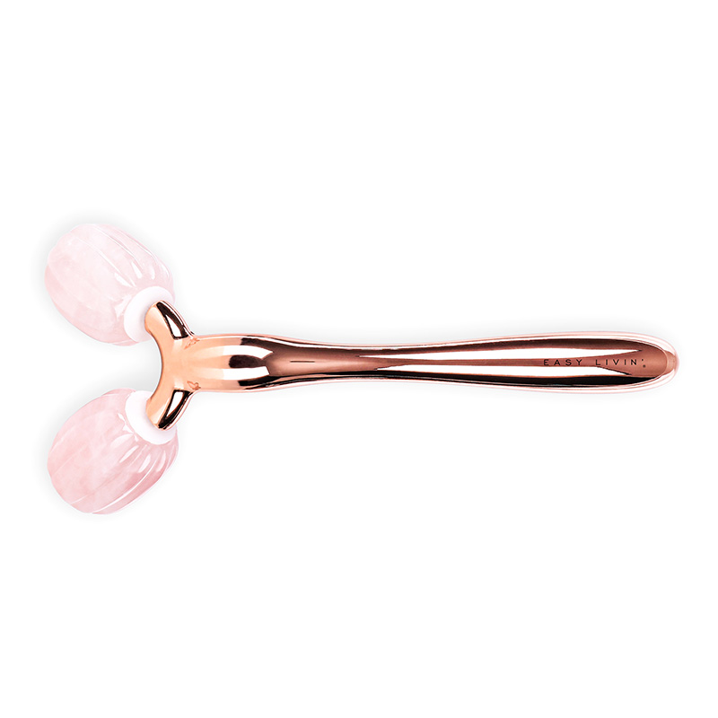 Roller z dwoma głowicami z różowego kwarcu to akcesorium wspomagające pielęgnację i zapewniające relaks dla mięśni twarzy. Odpowiedni dla tych, którzy chcą popracować nad konturowaniem owalu twarzy, zwiększeniem napięcia skóry, poprawą drenażu limfy i krążenia krwi.