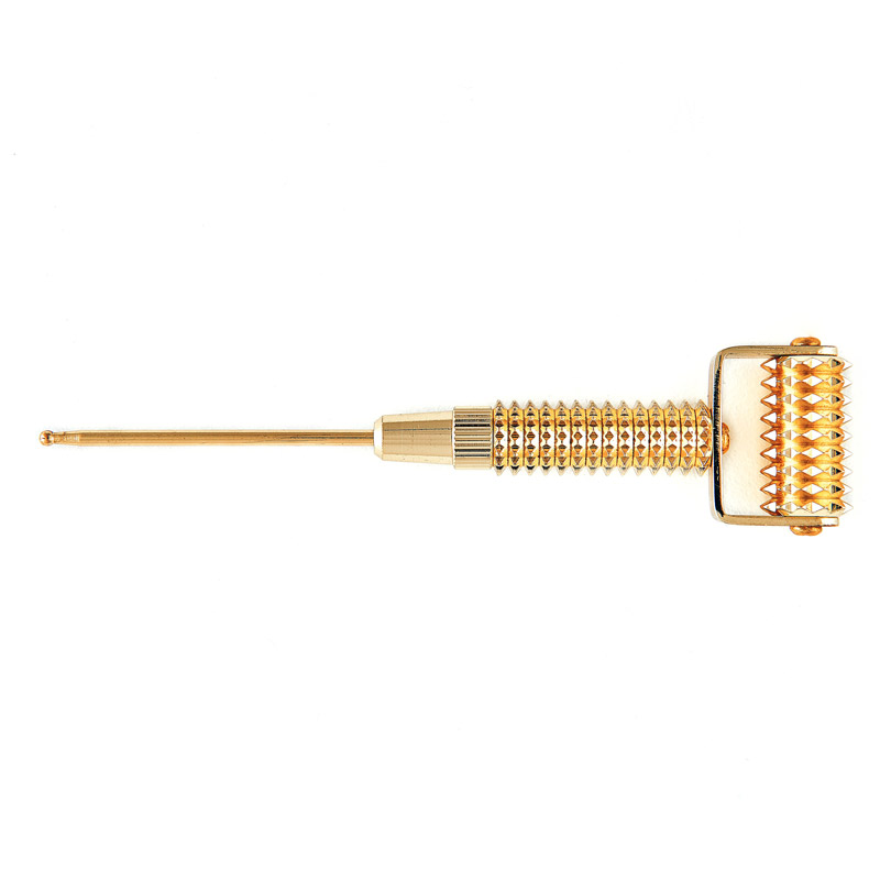 Gold Derma Roller to gadżet dla osób, które uwielbiają domowe masaże. Przy regularnym jego stosowaniu skóra staje się bardziej napięta, promienna, a obrzęk zostaje zredukowany. To idealny dodatek do domowego SPA, kiedy zmagamy się ze zmęczeniem i stresem. Poprzez lekki nacisk roller stymuluje skórę, dzięki czemu lepiej przyjmuje składniki z kosmetyków. Dodatkowo masaż wspomaga drenaż limfatyczny oraz detoksykację skóry.
