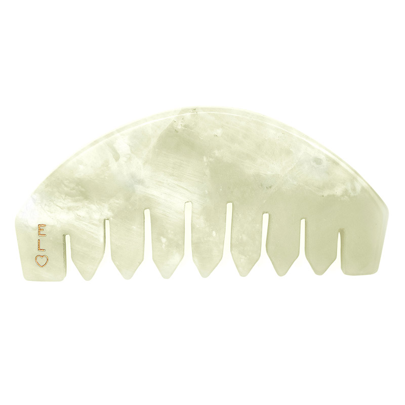 Grzebień wykonany z naturalnego jadeitu, służy do masażu skóry głowy. Jadeit jest kamieniem szlachetnym, nazywanym "kamieniem młodości". Przyjemnie relaksuje, wpływa na samopoczucie, redukując stres oraz stymuluje skórę głowy, poprawiając krążenie.