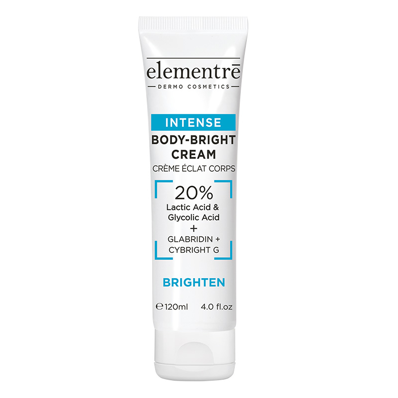 Regularna aplikacja kosmetyku Elementre Intense Body Bright Cream pielęgnuje skórę ciała zapewniając jej rozświetlenie, nawilżenie, regenerację i zmniejszenie widoczności niedoskonałości.