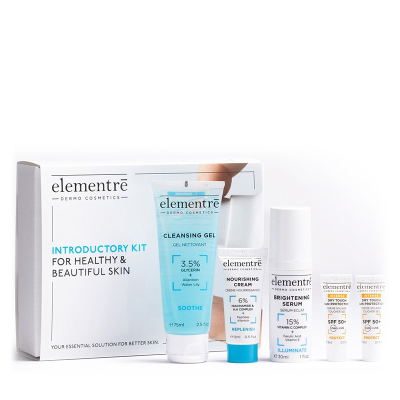 Składowa Elementre Dry Touch Sun Protection SPF 50 Filtr przeciwsłoneczny występuje w zestawie Introductory Kit w zmienionej objętości.
