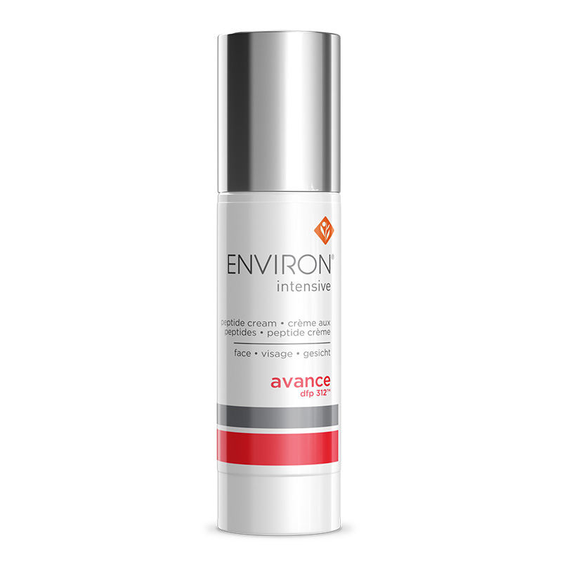 Intensive Avance DFP 312 - Intensywny krem peptydowy. Krem przeznaczony jest dla skór dojrzałych i starzejących się, które oczekują dużej dawki regeneracji i ujędrnienia. Skład opiera się na kombinacji peptydowej: Matrixyl 3000, Trylagen i Matrixyl Synthe 6 - wygładzają one zmarszczki, wypełniając skórę od środka oraz wspomagają procesy regeneracji. Dodatek skwalenu nadaję skórze gładkości oraz ochrania ją przed wolnymi rodnikami, opóźniając starzenie się skóry. Cera po użyciu staje się intensywnie nawilżona, uelastyczniona oraz wyrównuje się jej koloryt. Rekomendowane stosowanie z dermarollerem Roll-CIT Environ. Zaleca się stosowanie ochrony przeciwsłonecznej marki Environ, po odbyciu kuracji.