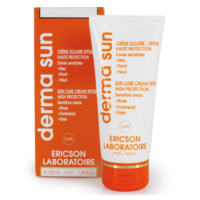 Derma Sun Creme Solaire SPF50 - Krem do opalania SPF50 to wyjątkowo delikatny produkt stworzony, aby chronić skórę przed negatywnym działaniem słońca. Świetnie się sprawdzi zwłaszcza przy cerze wrażliwej i skłonnej do alergii. W kremie zostały zawarte substancje łagodzące: alantoina i aloes, które poza ukojeniem podrażnionej skóry, nawilżają ją oraz odbudowują zniszczony naskórek. Zastosowany składnik o biotechnologicznym pochodzeniu VenuceaneTM sprawia, że termicznie aktywowana jest ochrona skóry oraz działanie przeciwzmarszczkowe. Dodatek Thalitanu - kompleksu otrzymanego z algi brunatnej, powoduje natomiast stymulację melanogenezy (procesu tworzenia barwnika skóry), a także ochronę przed szkodliwym działaniem wolnych rodników powstałych podczas opalania.