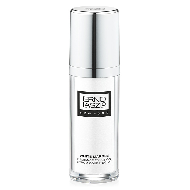 White Marble Radiance Emulsion - Emulsja rozświetlająca z komórkami macierzystymi i wit. B3. Jedwabiste, szybko wchłaniające serum rekomendowane dla skór z przebarwieniami. Zawiera w swoim składzie ActiveBright Complex pozyskiwany z krzewu mącznicy lekarskiej o działaniu intensywnie rozjaśniającym i blokującym działanie melaniny w skórze oraz ClariPure Stem Cell Blend pobudzający odnowę komórkową. Ponadto w preparacie znajduje się witamina B3 która zwęża pory, wyrównuje koloryt skóry, matuje, wygładza i redukuje drobne linie i zmarszczki. Produkt działa również antyoksydacyjnie, chroniąc przed szkodliwymi czynnikami zewnętrznymi. Serum ujednolica koloryt skóry, zapewniając jej promienisty wygląd.