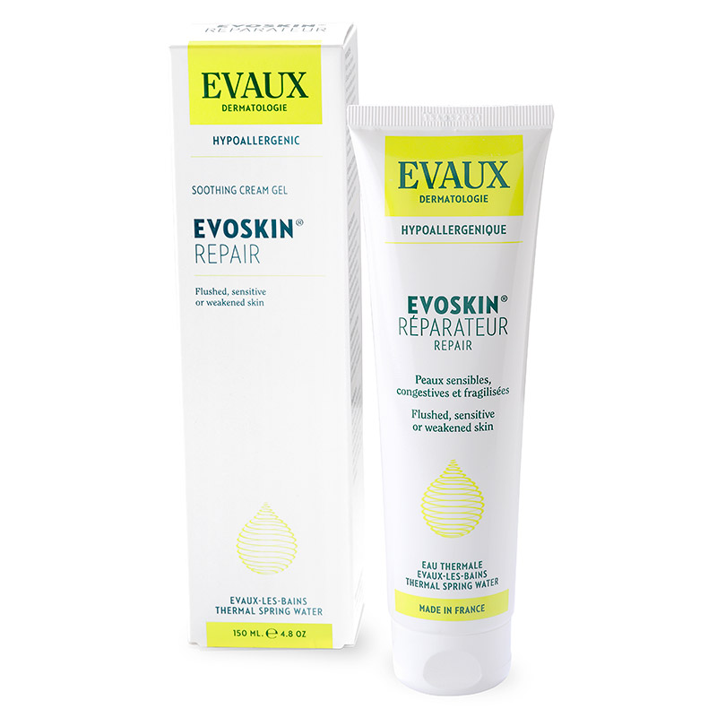 Evoskin Repair Soothing Cream Gel - Odbudowa - krem do twarzy i ciała to kosmetyk medyczny przeznaczony do skóry wrażliwej, bardzo suchej, uszkodzonej oraz podrażnionej. Jego wyjątkowa i hipoalergiczna formuła oparta jest na leczniczej wodzie termalnej Evaux, której elementy składowe przyspieszają gojenie, zmniejszają stan zapalny i odbudowują skórę. Krem normalizuje keratynizację oraz przeciwdziała podrażnieniom, a także wykazuje właściwości nawilżające, regeneracyjne i przeciwrumieniowe. Ponadto wzmacnia i uelastycznia ściany naczyń krwionośnych, dzięki czemu zmniejsza rumień. Preparat łatwo się wchłania i szybko odbudowuje barierę hydrolipidową naskórka. Ma naturalne pH.