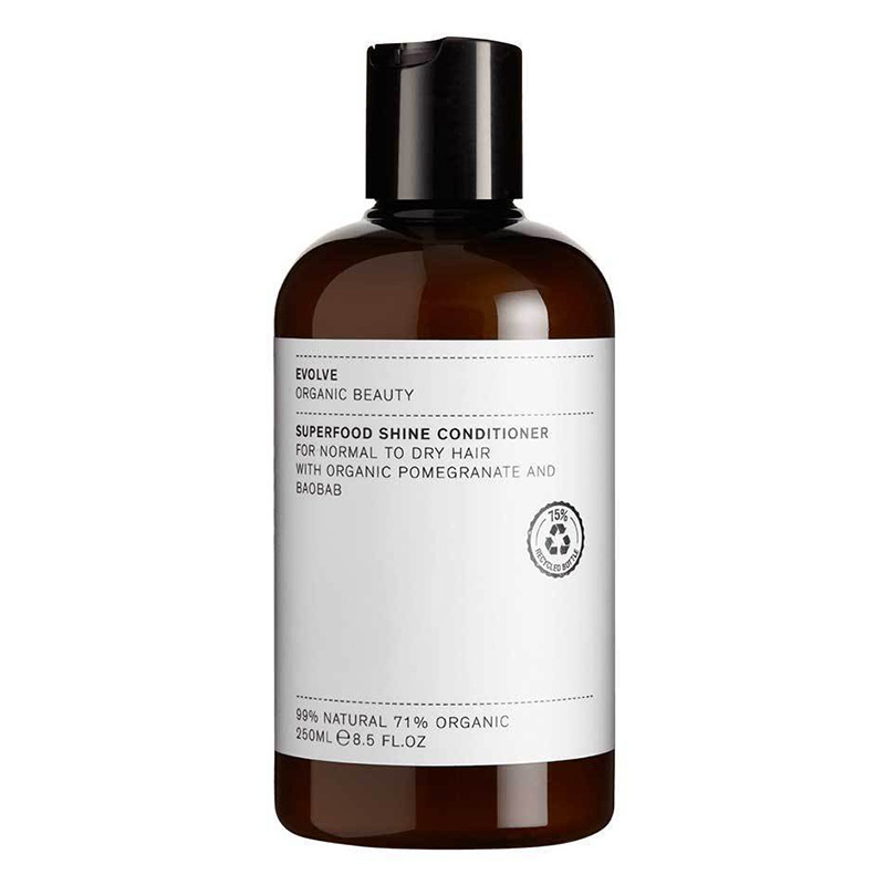 Superfood Shine Conditioner - Odżywka do włosów została stworzona, aby nawilżyć i odbudować włosy suche i normalne. Zawiera proteiny z baobabu, które zwiększają połysk, wzmacniają, chronią, redukują puszenie i ułatwiają rozczesywanie włosów. Ekstrakt z granatu zmniejsza utratę wody, nawilża i chroni, a masło shea (bogate w kwasy tłuszczowe, witaminę A i E) zapewnia natychmiastowe odżywienie suchych włosów.