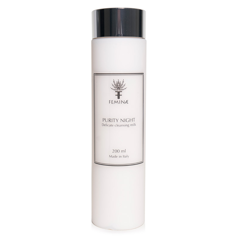 Purity Night Delicate Cleansing Milk - Delikatne mleczko oczyszczające. Bogate mleczko oczyszczające zostało stworzone z myślą o skórze, która reaguje podrażnieniem i zaczerwienieniem na standardowe produkty oczyszczające. Delikatna emulsja usuwa zanieczyszczenia, napina i rozjaśnia skórę. Formuła bogata w lecytynę, olej z nasion czarnej porzeczki i masło shea wzmacnia płaszcz hydrolipidowy skóry poprawiając tym samym jej poziom nawilżenia, strukturę oraz jędrność. Bisabolol oraz wyciąg z miechunki działają łagodząco, dzięki czemu skóra jest gładka i ukojona nawet zaraz po demakijażu!