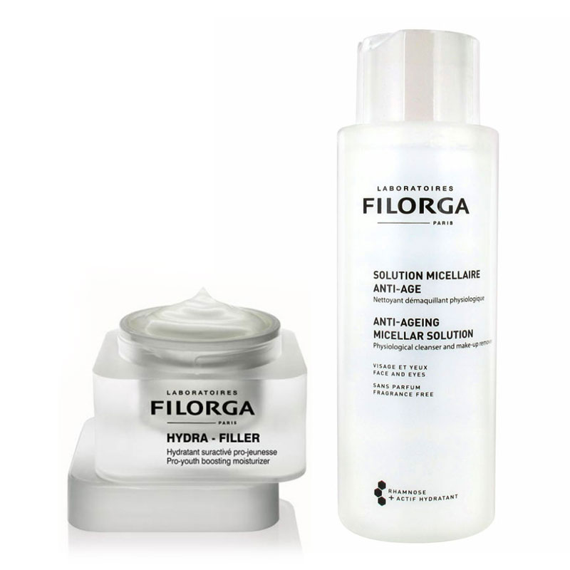 PROMOCJA Hydra-Filler + Anti-Age Micellar Solution ZESTAW Krem nawilżająco-odmładzający, Woda micelarna W CENIE 305 zł (cena regularna 345 zł)