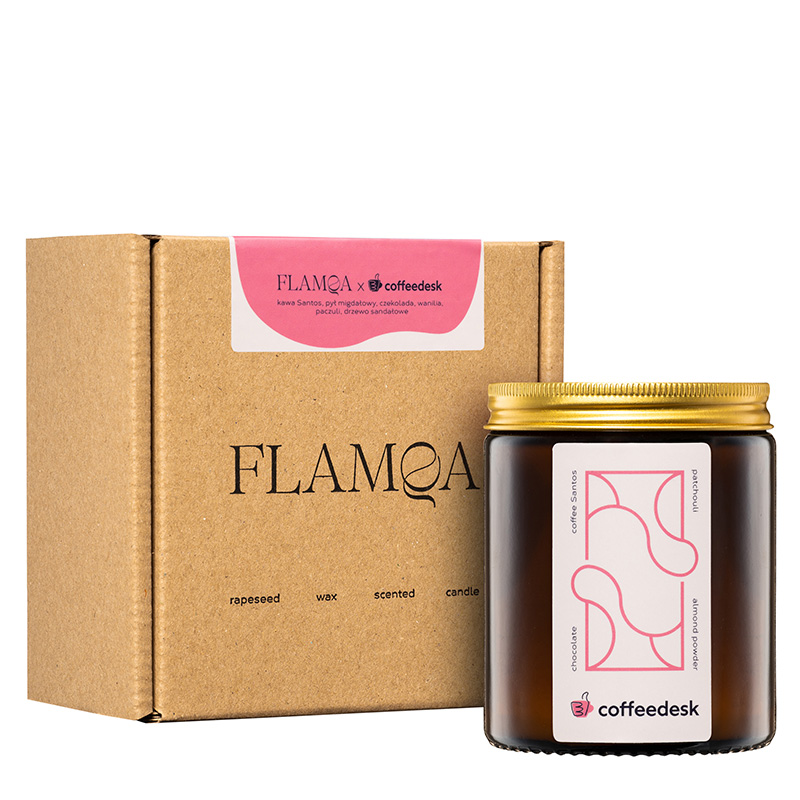 Otwierającymi nutami górnymi Coffeedesk Candle jest kawa Santos i pył migdałowy. Nutami serca są czekolada i wanilia, a bazę tworzą paczula i drzewo sandałowe. Ten otulający zapach jest wymarzony na długie, jesienno-zimowe wieczory.