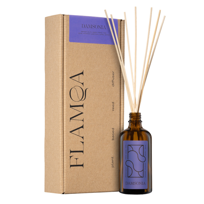 Damsonia Diffuser to doskonały dyfuzor na lato. Łączy w sobie świeżość i owocową słodkość. Na ten wielowymiarowy bukiet składają się śliwka damson, czarna porzeczka i wiśnia występujące w nutach górnych. Róża, goździk, cynamon są nutami serca, a paczula, tonka i wanilia to nuty bazowe.