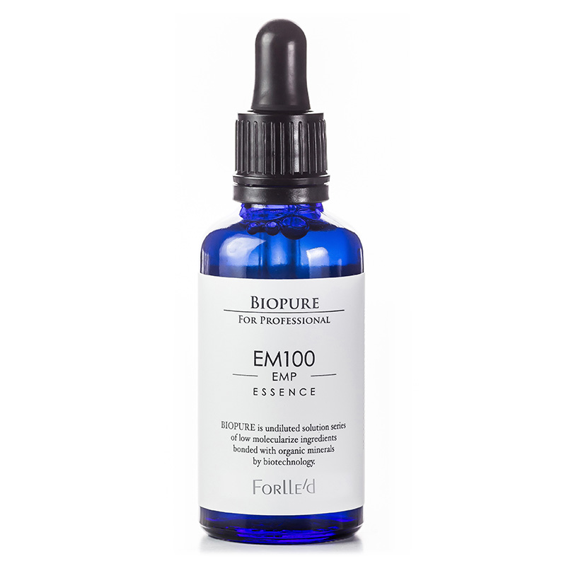 Biopure EM 100 Essence - Serum z białkiem skorupki jajka. Profesjonalne serum posiadające w składzie zhydrolizowane błony skorupki jajka, które cechuje się wysoką zawartością aminokwasów i protein, które są kompatybilne ze skórą. Produkt powoduje wzrost aktywności fibroblastów, stymulując ich wzrost oraz wykazuje działanie wzmacniające naskórek. Intensywnie poprawia elastyczność i jędrność skóry. Serum dodatkowo oddziałuje silnie oczyszczająco na skórę tłustą i problematyczną a także działa zapobiegająco na powstawanie przebarwień oraz blizn. Produkt ten polecany jest dla osób z widocznym starzeniem się skóry, z obecnością lub skłonnością do stanów zapalnych, regeneracji skóry po zabiegach medycyny estetycznej lub chirurgii plastycznej. Serum można stosować z dermarollerem do (0,03 mm).