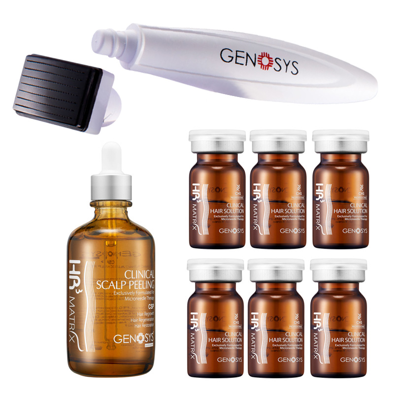 Dodatkowo takie składniki jak fibroblastyczny czynnik wzrostu, insulinopodobny czynnik wzrostu, peptydy miedziowe i witaminy wspomagają wzrost nowych włosów. Rezultaty samodzielnego stosowania koktajlu w ampułkach są bardzo dobre, jednak dzięki użyciu Derma Rollera lub Stempla marki Genosys przenikanie składników aktywnych jest lepsze, a efekty bardziej widoczne.