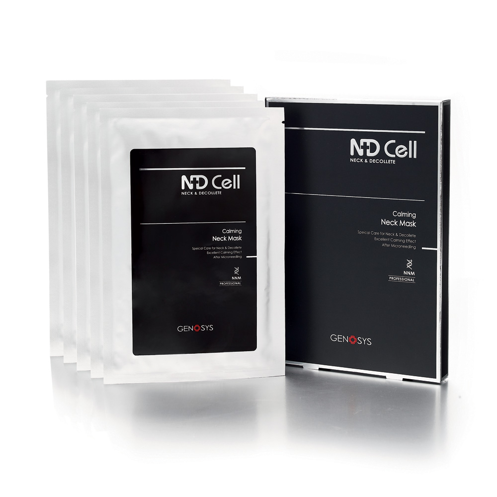 ND Cell - Maska peptydowa szyja i dekolt. Wysoką skuteczność maski uzyskujemy dzięki jej unikalnemu kształtowi, który idealnie przylega do skóry, nie pozostawiając pustych obszarów. Produkt przynosi ulgę zmęczonej skórze, ma działanie uspokajające oraz silnie nawilżające. Dzięki swoim składnikom nie pozwala na ucieczkę wody na zewnątrz. Po użyciu uzyskujemy efekt napiętej i wygładzonej cery. Idealnie sprawdzi się po zabiegach inwazyjnych, np. derma rollerem, peelingach czy laserach.