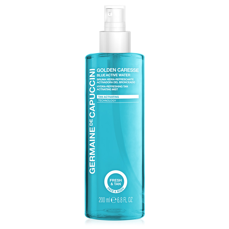 Blue Activ Water - Mgiełka nawilżająca przyspieszająca opalanie. Produkt rekomendowany dla każdego typu skóry, szczególnie suchej i odwodnionej. Może być stosowana zarówno na twarz jak i na skórę całego ciała. Mgiełka zwiększa intensywność opalenizny oraz zapewnia skórze natychmiastowe odświeżenie i nawilżenie, powstałe w wyniku nadmiernej ekspozycji na promieniowanie słoneczne i działanie wysokich temperatur w lecie. Zwiększa zdolność skóry do zatrzymywania wody, a technologia Tan Activating, aktywuje i przedłuża opaleniznę. Skóra zyskuje intensywny, promienny i zdrowy odcień w ciągu zaledwie kilku dni.