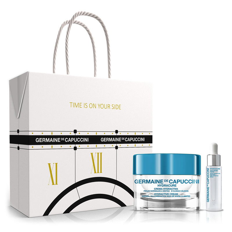 Składowa Germaine de Capuccini Hydracure Hyaluronic Force Serum z kwasem hialuronowym występuje w zestawie Moments Hydrac Mix Skin w zmienionej objętości.