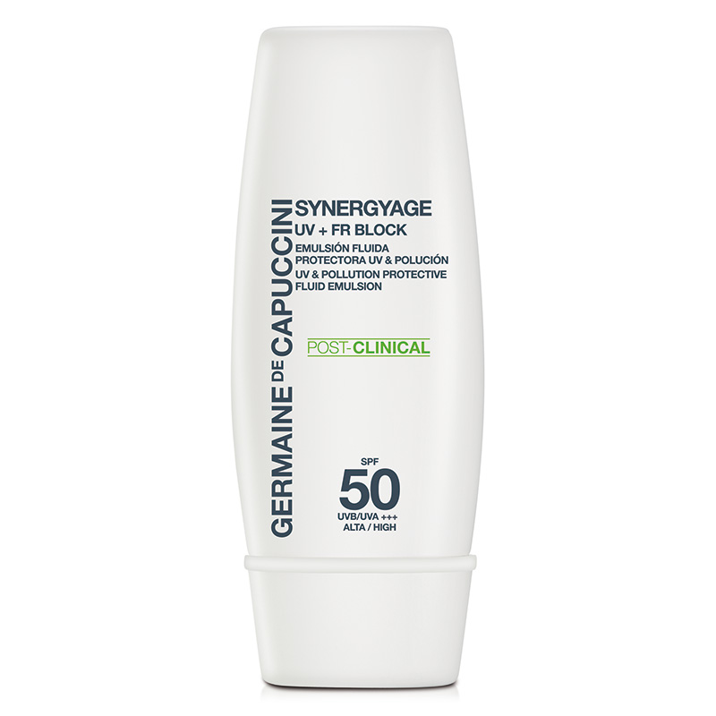 UV & Pollution Protective Fluid Emulsion SPF 50 - Krem z wysoką ochroną, pozabiegowy. Emulsja stworzona do naprawy skóry podrażnionej przez agresywne zabiegi estetyczne, przyjmowanie silnych leków oraz wysokie zanieczyszczenia środowiskowe. Chroni przed promieniowaniem UVA i UVB, a także przed stresem oksydacyjnym uszkadzającym komórki skóry. Działa łagodząco, zmniejsza zaczerwienienia i uczucie swędzenia wrażliwej, atopowej i ekstremalnie suchej skóry. Krem odnawia również naturalną barierę lipidową naskórka. Produkt ma lekką konsystencję i szybko się wchłania.