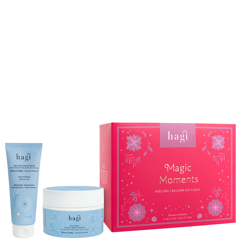 Hagi. Polska marka kosmetyków naturalnych. Wyróżnia je wysoka jakość składników aktywnych oraz niskie ryzyko wystąpienia alergii. W ofercie znajdziemy produkty zarówno do pielęgnacji twarzy, ciała oraz do kąpieli. Marka oferuje również relaksacyjne świece o przeróżnych zapachach, które pozwolą wyczarować swoje własne, domowe SPA. Hagi to nie tylko produkty dla dorosły, to również cała seria przeznaczona do pielęgnacji od pierwszych dni - Hagi Baby. Bezpieczne składy, naturalne formuły oraz wysoka skuteczność gwarantują najlepsze działanie dla niezwykle delikatnej skóry dziecka.