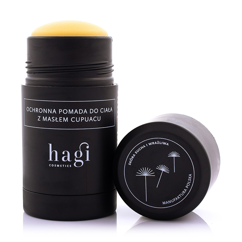 W składzie zawarto mieszankę masła cupuacu, wosku candelilla, aloesu, masła shea i oleju konopnego, które pozwolą na silne nawilżenie i odżywienie nawet najbardziej wysuszonych partii skóry. Formuła preparatu doskonale nawilża, wygładza oraz przynosi ukojenie ściągniętej i łuszczącej się skórze. Odżywia oraz regeneruje uszkodzenia, dzięki czemu pozostawia skórę miękką i elastyczną.