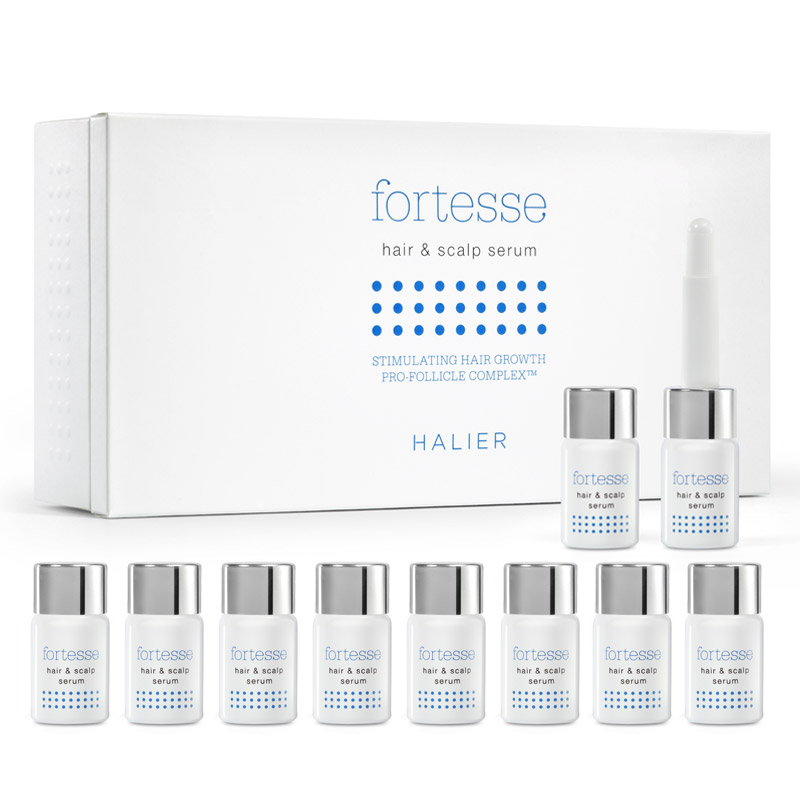 Fortesse Hair & Scalp Serum - Serum do włosów dla kobiet. Produkt ma działanie wzmacniające cebulki włosowe oraz pobudzające je do wzrostu. Formuła produktu nie obciąża włosów oraz poprawia ogólną kondycję skóry głowy. Preparat zawiera formułę Pro-Follicle Complex™, która chroni włosy przed wypadaniem oraz wspomaga ich wzrost. Regularne stosowanie pozwala na uzyskanie efektu zdrowych, lśniących i nawilżonych włosów. W składzie produktu znajduje się: