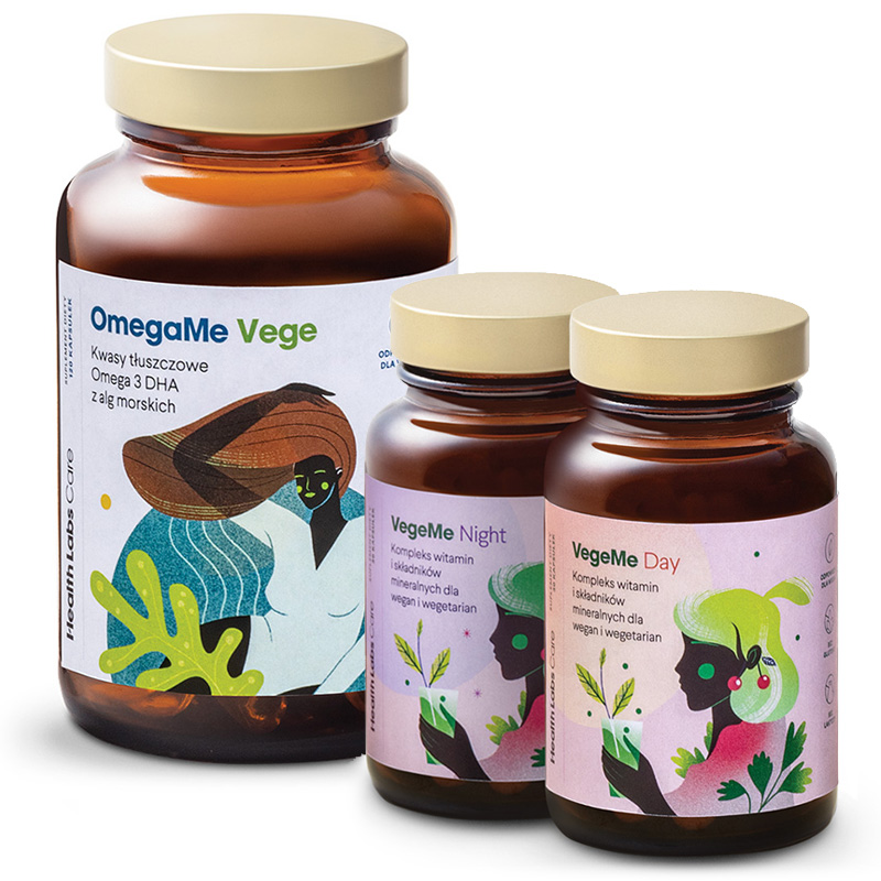 Suplement VegeMe Day And Night został opracowany z myślą o uzupełnieniu składników istotnych w diecie roślinnej. Preparat podzielono na dwa kompleksy – na dzień i na noc – co uwzględnia wzajemne oddziaływanie składników.