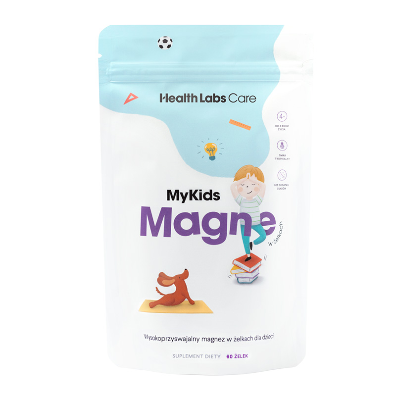 Produkt MyKids Magne jest dostępny w formie miękkich żelek powstałych na bazie pektyn owocowych i wzbogaconych przecierami oraz koncentratami soków z jabłka, mango, banana, marakui, cytryny i ananasa. Jest odpowiedni dla wegan, nie zawiera glutenu, laktozy, żelatyny i dodatku cukrów. Wygodna forma opakowania umożliwia szybkie otwieranie i zamykanie, zapewniając zachowanie świeżości i ochronę żelek przed utlenianiem.