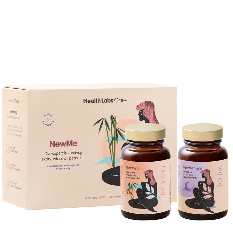 Suplement diety NewMe jest przeznaczony dla dorosłych. Produkt składa się z dwóch oddzielnych formuł – na dzień i na noc – zamkniętych w osobnych słoiczkach, dostosowanych do pór dnia.