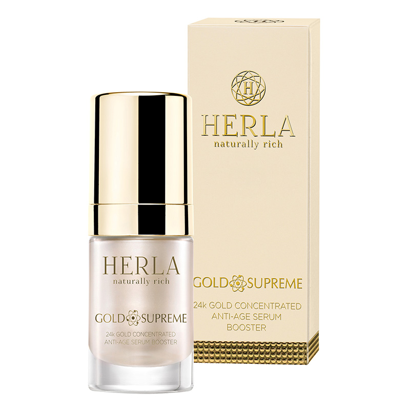 Składowa Herla 24k Gold Concentrated Anti Age Serum Booster Skoncentrowane serum odmładzające występuje w zestawie Gold Supreme I w zmienionej objętości.