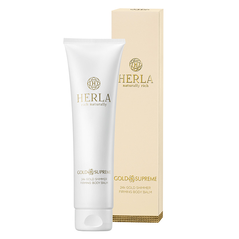 24k Gold Shimmer Firming Body Balm - Rozświetlający balsam ujędrniający z płatkami złota 150 ml. Odżywczy balsam do ciała z drobinkami 24-karatowego złota. Ma właściwości łagodzące i nawilżające. BiodineV - mieszanina roślinnych steroli - natychmiastowo przywraca równowagę lipidową w skórze. Stosowanie balsamu przywraca skórze przyjemną miękkość, gładkość i silne nawilżenie. Połączenie trzech olejów - jojoba, arganowego i marula - intensywnie odżywia, a także uelastycznia i ujędrnia skórę. Substancja aktywna o nazwie Vitasource™ wykazuje silne działanie odmładzające. Drobinki złota dodają blasku subtelnie rozświetlając skórę.