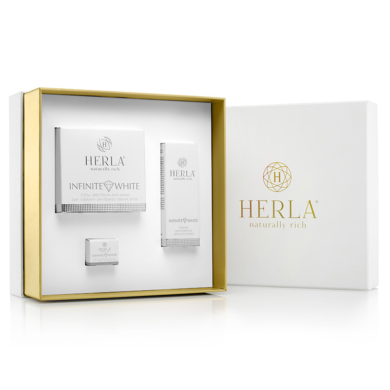 Regularne stosowanie kosmetyku Herla Nutritive Brightening Face Toner nawilża skórę i wspomaga procesy regeneracji. Tonik doskonale przygotowuje cerę na aplikację każdego kosmetyku z linii Herla Infinite White.