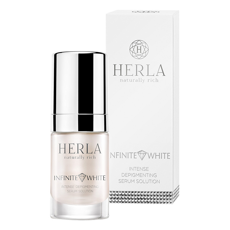 Kremowo-żelowe serum depigmentacyjne marki Herla zostało opracowane w oparciu o innowacyjne technologie WhiteTen™, Pentavitin® oraz PolluStop®. Produkt działa na zasadzie hamowania procesu wytwarzania melaniny odpowiedzialnej za zaburzenia pigmentacyjne w skórze. Dzięki temu regularne stosowanie preparatu rozjaśni i wyrówna koloryt skóry.