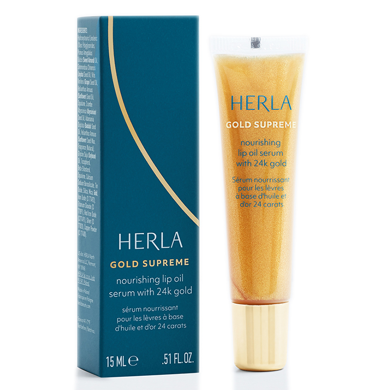 Po zastosowaniu Nourishing Lip Oil Serum 24k Gold marki Herla usta stają się odżywione, miękkie i nabierają soczystego, zmysłowego wyglądu.