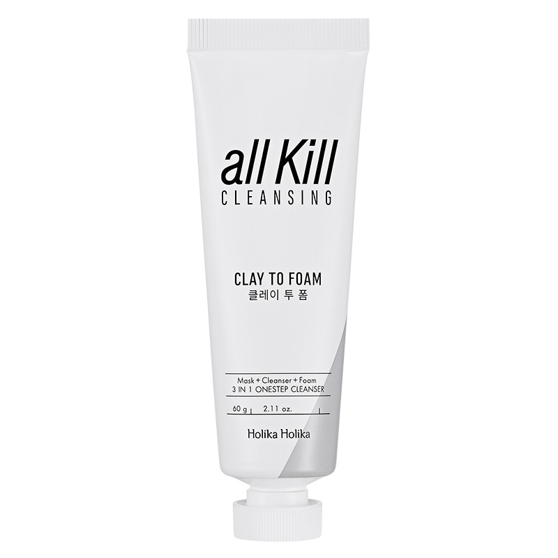 All Kill Clay To Foam Gęsta maseczka oczyszczająca. Seria produktów All Kill przeznaczona jest do głębokiego oczyszczania skóry. Kremowa maseczka ma za zadanie oczyszczenie skóry z zanieczyszczeń, resztek makijażu oraz pozbyć się zalegających na skórze martwych komórek. Naturalne sufaktanty, czyli składniki myjące nie powodują podrażnień, pozostawiając skórę miękką i delikatną w dotyk.