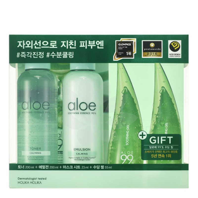 Składowa Holika Holika Aloe Soothing Essence Toner Tonik nawilżający z aloesem występuje w zestawie Aloe Moisturizing Kit w zmienionej objętości.