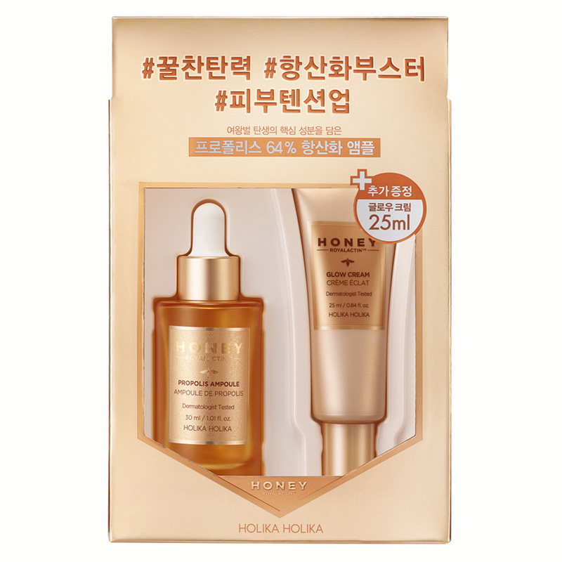 Składowa Holika Holika Honey Royal Lactin Glow Cream Krem rozświetlający występuje w zestawie Honey Royal Lactin Glow Cream + Honey Royal Lactin Propolis Ampoule w zmienionej objętości.