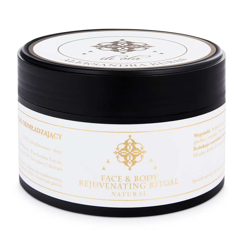 Face & Body Rejuvenating Ritual Natural - Naturalny mus do twarzy i ciała ma niebywale lekką konsystencję oraz nie posiada dodatkowych kompozycji zapachowych. Ma bezpieczną formułę, dzięki czemu sprawdzi się nawet w przypadku skóry wymagającej i wrażliwej. Skóra po użyciu odzyskuje miękkość, staje się jedwabiście gładka i świetlista. Masło redukuję uczucie swędzenia, ściągnięcia oraz łagodzi podrażnienia skóry. Polecane jest dla skóry odwodnionej oraz przesuszonej. Idealnie sprawdzi się również po opalaniu, gdy skóra jest zniszczona oraz podrażniona przez słońce. W składzie znajdziemy 50% zawartości nierafinowanego masła shea, który nie tylko odżywia skórę lecz działa przeciwstarzeniowo. Regularne stosowanie pozwoli również na spłycenie zmarszczek.