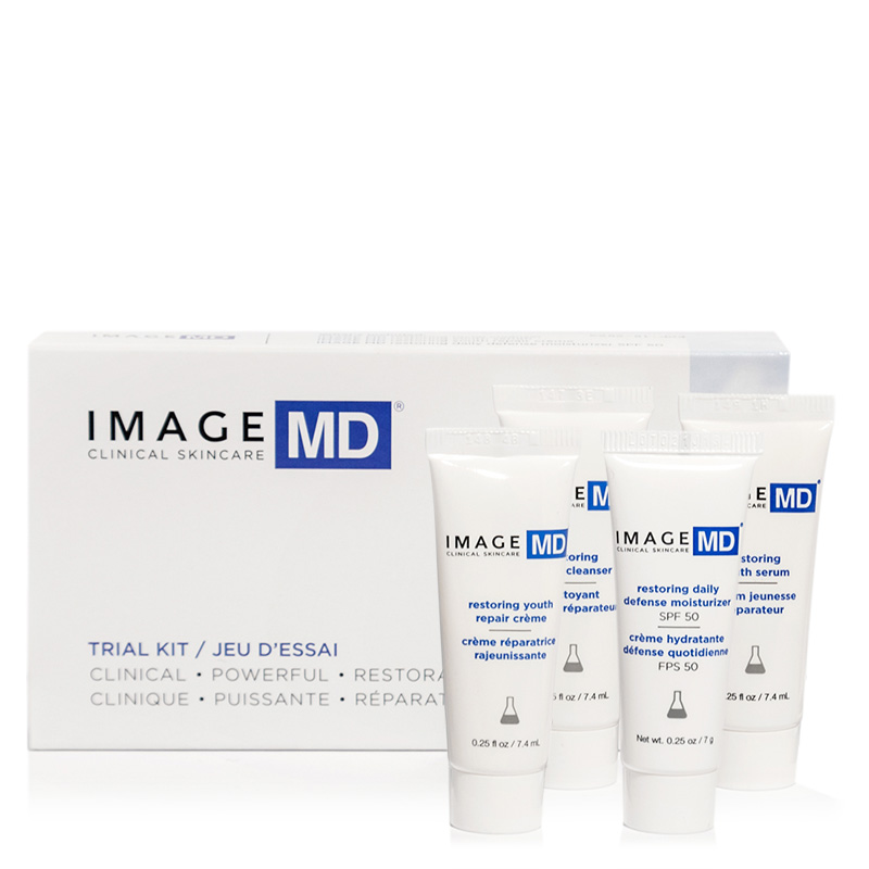 Składowa Image Skincare Restoring Daily Defense Moisturizer SPF 50 Krem ochronno-nawilżający występuje w zestawie MD Travel Trial Kit w zmienionej objętości.