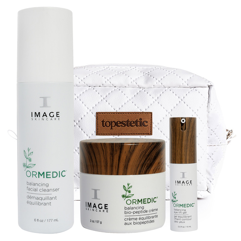 Ormedic Set. Bazowy zestaw pielęgnacyjny, dedykowany dla każdego typu skóry, a szczególnie cery suchej i wrażliwej. Swoje działanie opiera głownie na mieszance botanicznych składników, kwasie hialuronowym oraz witaminie C. W skład zestawu wchodzą cztery produkty: preparat oczyszczający, krem nawilżający stymulujący procesy naprawcze i syntezę kolagenu, krem wygładzająco - nawilżający na okolice oczu oraz elegancka kosmetyczka z logiem topestetic. W rezultacie stosowania skóra zyskuje zdrowy blask, staje się gładka i odżywiona.