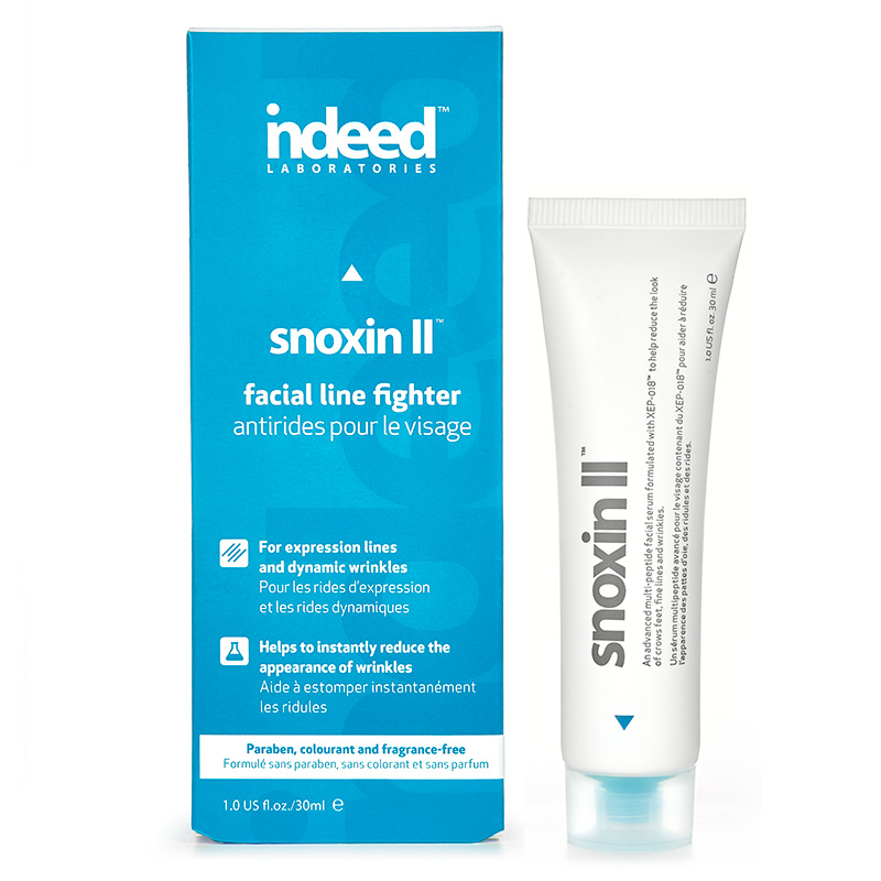 Snoxin II - Serum wygładzające zmarszczki. Produkt przeznaczony do pielęgnacji skóry dojrzałej, z widocznymi zmarszczkami, bruzdami i brakiem napięcia. Zawiera w swoim składzie biomimetyczne peptydy XEP-018™ o właściwościach rozkurczających mięśnie, co sprawia iż serum wygładza skórę, likwiduje widoczność linii i zmarszczek. Kosmetyk stanowi doskonałą alternatywę dla zabiegów toksyny botulinowej czy chirurgii plastycznej, gdyż natychmiast przynosi długotrwałe efekty. Zawiera w swoim składzie także Perfection Peptide P3™, który przyspiesza odnowę komórkową, złuszcza skórę, co sprawia iż skóra zyskuje świeży, promienisty wygląd. Matrixyl Synthe’6™ pobudza produkcję kolagenu, elastyny oraz kwasu hialuronowego w skórze. Pierwsze efekty pojawiają się na skórze zaledwie po 2 godzinach od aplikacji produktu. Serum sprawia, iż skóra wygładza się staje się bardziej napięta i doskonale nawilżona. Zyskuje młody, wypoczęty wygląd pozbawiony niedoskonałości i skaz.