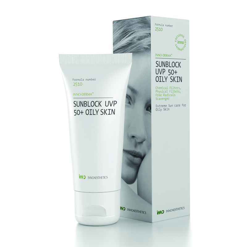 INNO-DERMA Sunblock UVP 50+ UVB/UVA Oily Skin - Krem z filtrem SPF50+ dla cery tłustej i mieszanej. Formuła oparta na połączeniu filtrów chemicznych oraz fizycznych wzbogacona o składniki nawilżające oraz seboregulujące. Wzmacnia naturalne funkcje obronne skóry przed destrukcyjnym działaniem wolnych rodników oraz wspomaga odbudowę uszkodzeń komórek naskórka.
