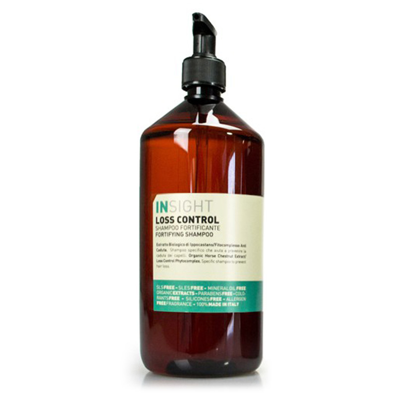 Loss Control Fortifying Shampoo - Szampon wzmacniający przeciw wypadaniu włosów. Włosy skłonne do wypadania potrzebują nie tylko składników aktywnych o działaniu wzmacniającym, ale również wymagają odpowiedniego oczyszczenia. Szampon InSight pozwala dokładnie oczyścić skórę głowy, dzięki czemu preparaty stymulujące wzrost włosów są w stanie przynieść lepsze efekty. Organiczny wyciąg z kasztanowca wzmacnia cebulki włosów, które zapewniają prawidłowy wzrost włosa. Kompleks z mentolu, guarany oraz Echinacea poprawia krążenie oraz stymuluje wzrost włosów. Dokładne oczyszczenie pozwala uzyskać najlepsze efekty wchłanialności składników aktywnych dostarczanych w kolejnych etapach pielęgnacji.