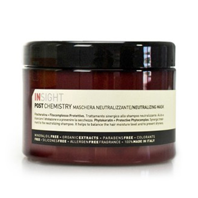 Post Chemistry Neutralizing Mask - Maska do pielęgnacji po zabiegach chemicznych. Silnie regenerująca maska pozwala przywrócić zdrowy wygląd włosom poddanym zabiegom chemicznym. Połączenie filokeratynu oraz kompleksu naturalnych składników regenerujących zapewnia włosom blask, nawilżenie oraz sprężystość. Bogaty w antyoksydanty kompleks z malin, czarnej porzeczki i owoców granatu chroni włosy przed działaniem czynników zewnętrznych takich jak wolne rodniki, które odpowiedzialne są za pogorszenie kondycji włosów. Fitokeratyna ma właściwości odbudowujące strukturę włosa, dzięki czemu zapewnia im blask i sprężystość. Włosy odzyskują zdrowy wygląd, a efekt zabiegu utrzymuje się dłużej!