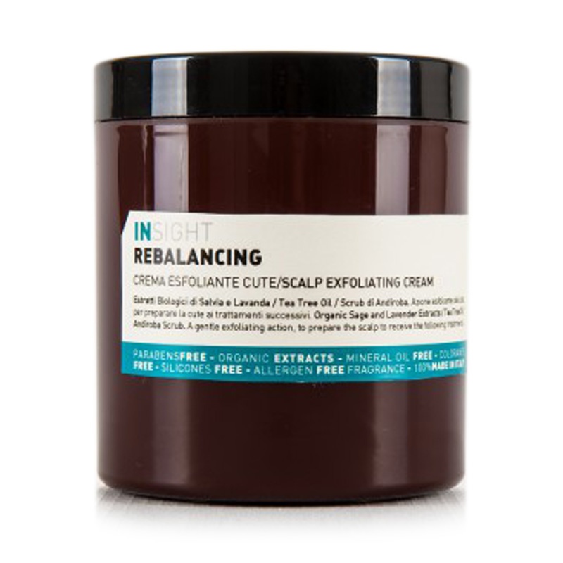 Rebalancing Scalp Exfoliating Cream - Piling do przetłuszczającej się skóry głowy. Głębokie oczyszczanie to niezbędny element pielęgnacji skóry przetłuszczającej. Nadmierny łojotok nie tylko zaburza codzienny komfort, ale może przyczynić się do rozwoju bakterii oraz może doprowadzić do nadmiernego wypadania włosów. Peeling to niezwykły produkt w pielęgnacji skóry głowy pozwalający skutecznie oczyścić jej powierzchnię i ułatwić wnikanie składników aktywnych z innych preparatów. Dzięki zawartości olejku z drzewa herbacianego peeling działa antybakteryjnie i zapobiega powstawaniu łupieżu. Ekstrakt z szałwii i lawendy gwarantuje odświeżenie oraz delikatnie złuszcza, przygotowując tym samym skórę głowy do dalszych zabiegów. Peeling jest odpowiedni dla każdego typu włosów.